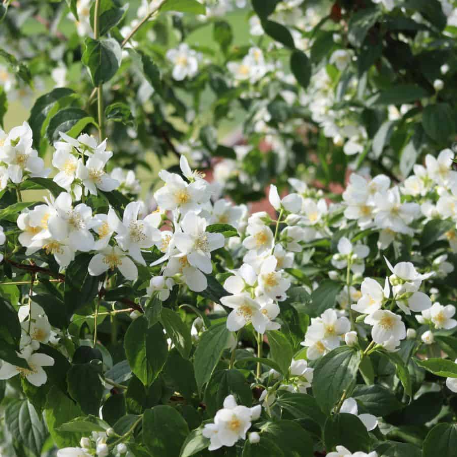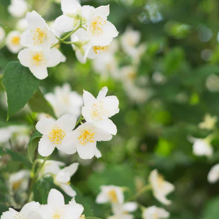 - Jasminum polyanthum: Fast-growing with pink buds that open to white flowers