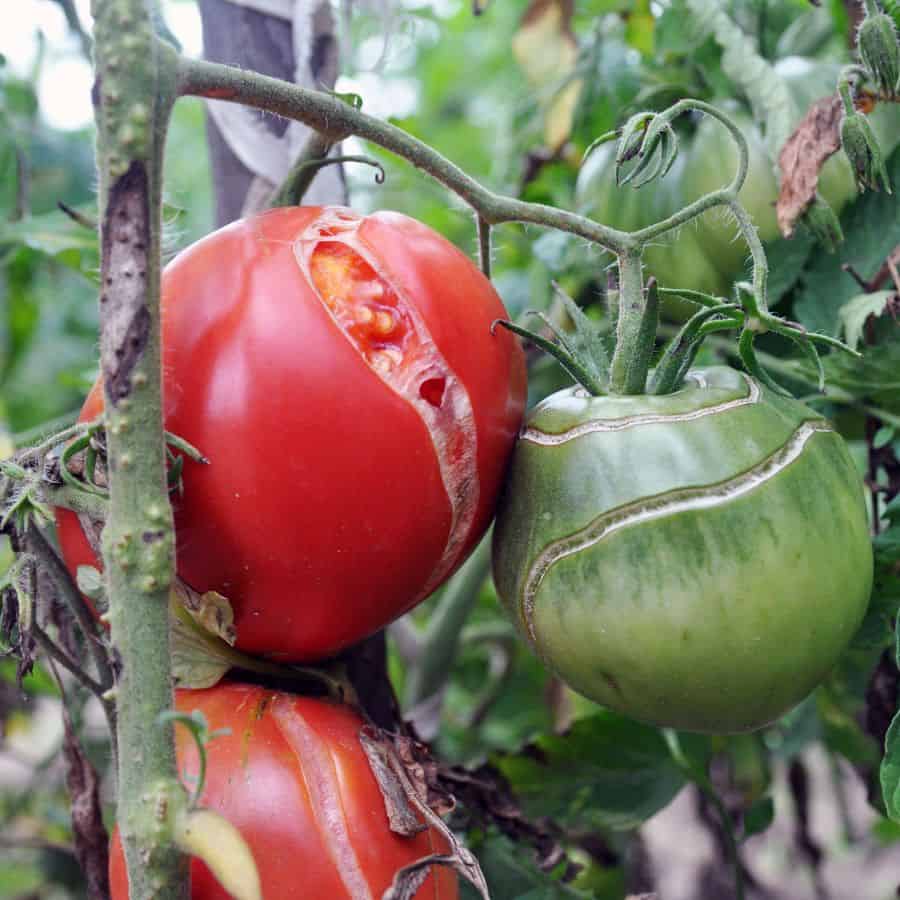 And while split tomatoes are still edible if caught quickly, they’re essentially rolling out the red carpet for pests and rot. Not exactly what you worked all season for!