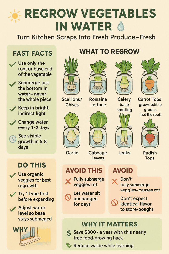 Did you know that vegetable “trash” can actually grow into fresh produce? I was surprised to learn that those bits we usually toss can regrow with nothing but water and a sunny windowsill.