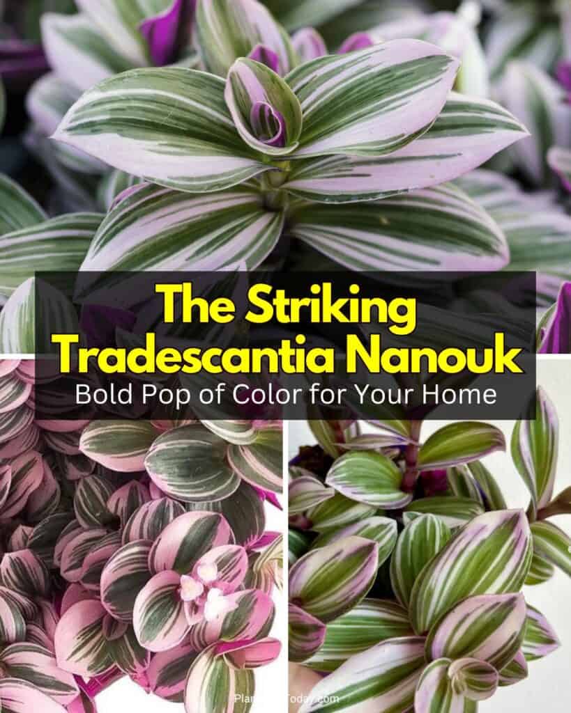 Tradescantia Nanouk (Trad-es-KAN-tee-uh, NAN- ou-k) is a trailing plant and belongs to the tradescantia family. Tradescantia also has prominent flowering members such as: