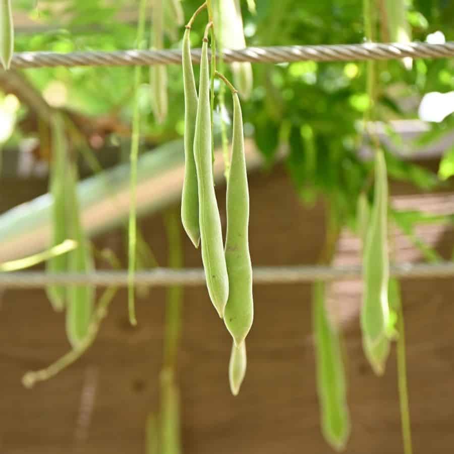 Beans climb easily up almost any structure with very little help from you. The main thing is choosing pole varieties instead of bush varieties.
