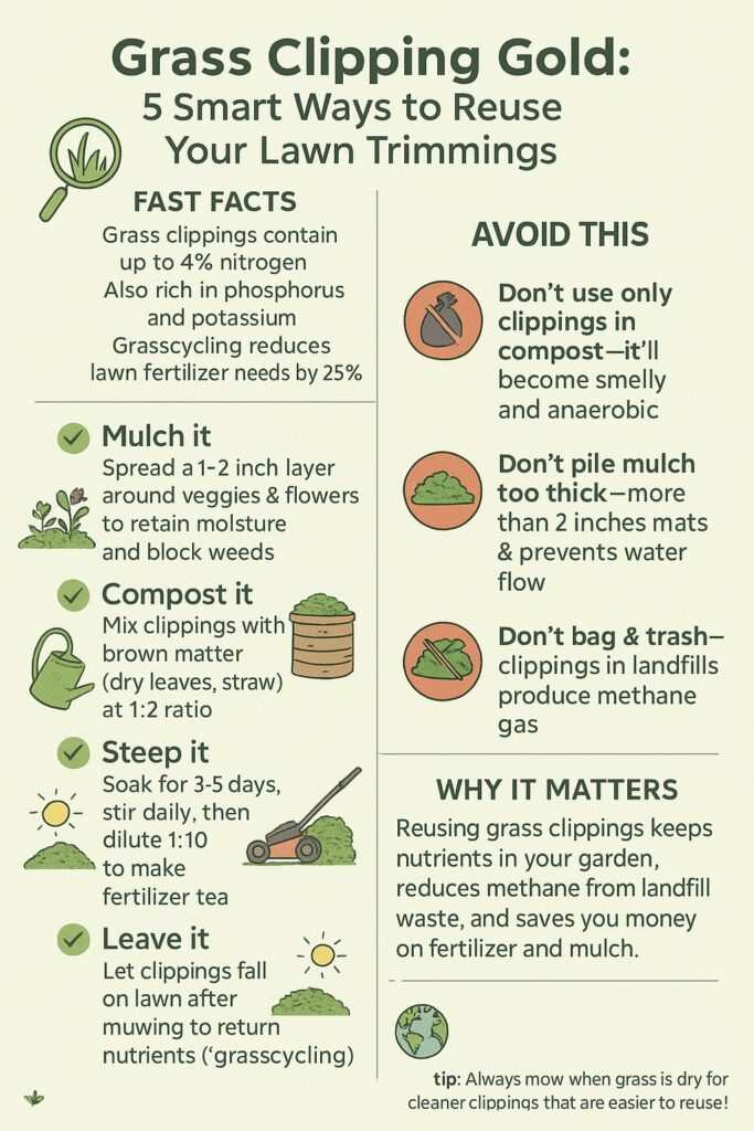 So next time you mow, remember: those aren’t just grass clippings. They’re your garden’s untapped potential just waiting to be unleashed!